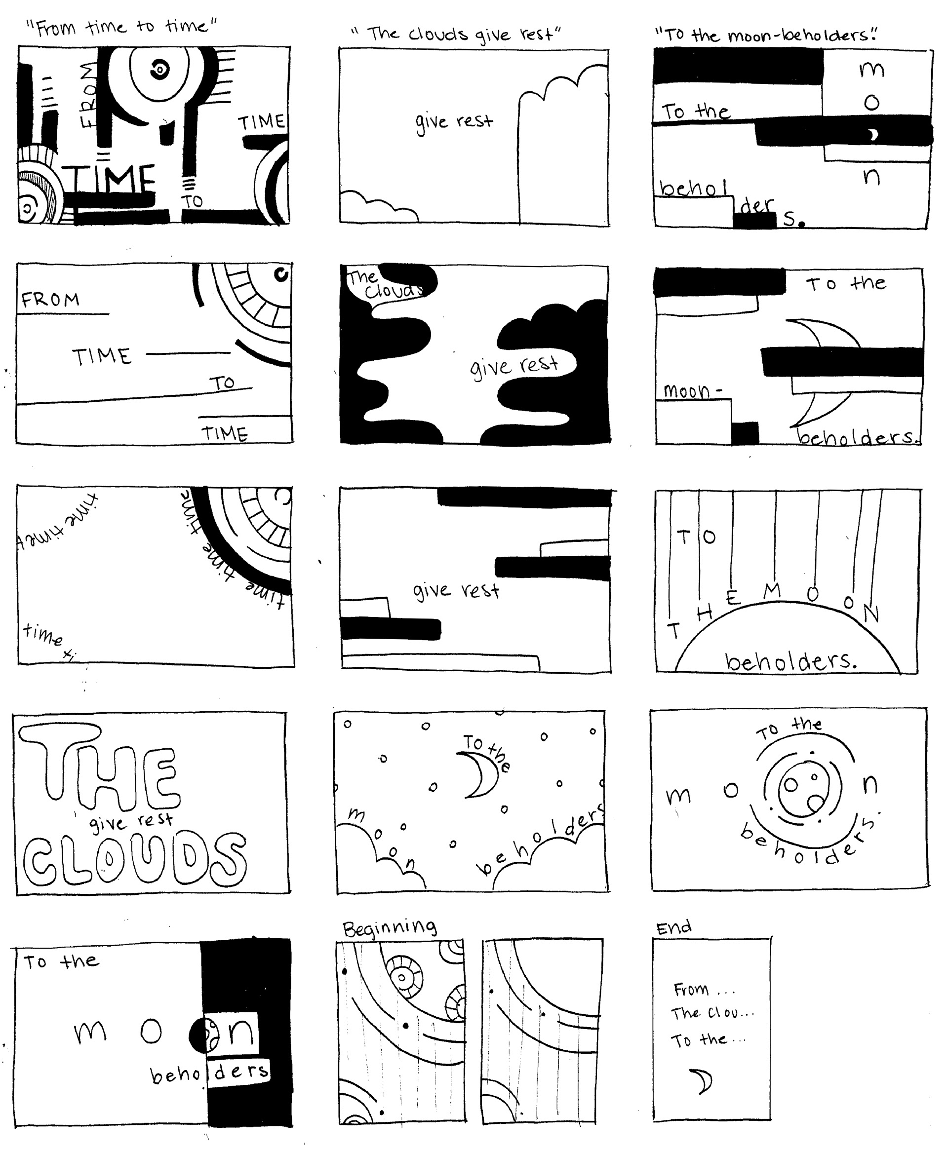 For this project, I chose a Haiku to design a visually interpretive pamphlet reflecting the poem. Each spread represents a different line of the poem and uses shape and line to communicate the meaning. The final product is a paper that can be printed and folded into a booklet.
